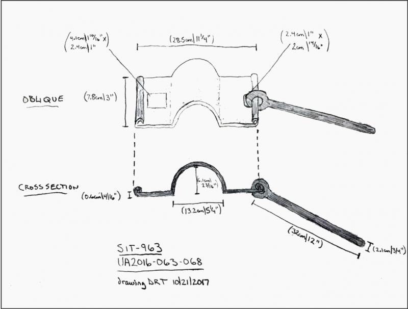 In 2016, a pair of trunnion caps / brackets (UA2016-063-068) from a cannon carriage were discovered eroding from the root system of a large spruce tree several meters above the beach. They rested directly upon two Russian axes. The elevation of the trunnion caps, along with nearby copper sheathing and other axes, coincides with the elevation of the upper tidal limit in 1813 prior to uplift. Their location is in downstream alignment with the prevailing current from the estimated wreck location of the NEVA. Our interpretation is that materials around the cove (trunnion caps, copper sheathing, axes, iron bar stock, etc.) were salvaged in the aftermath of the wreck and cached for later recovery. The only question that remains is whether the ship’s materials were cached by the survivors themselves or by later visitors to the site.